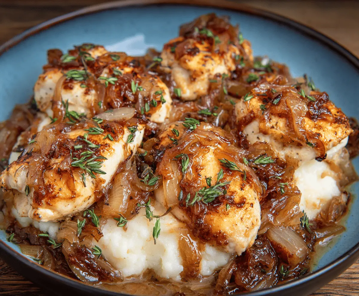 French Onion Chicken is a wonderful twist on classic French onion soup, combining tender chicken breasts with caramelized onions and melted cheese. The rich, savory flavors of the onions blend beautifully with the juicy chicken, creating a comforting and delicious dish that feels fancy but is really easy to make.